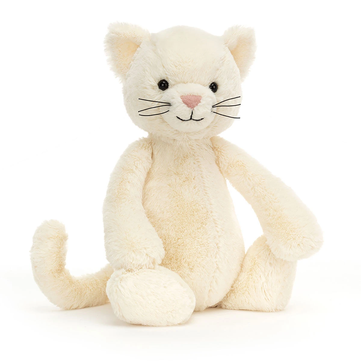 Bashful Cream Kitten from Jellycat features soft strokable cream fur, with sticky-up ears, beady black eyes, whiskers, and a soft pink nose. She is waiting for you to take her on a wonderful playtime adventure, and for lots of cuddles at naptime.