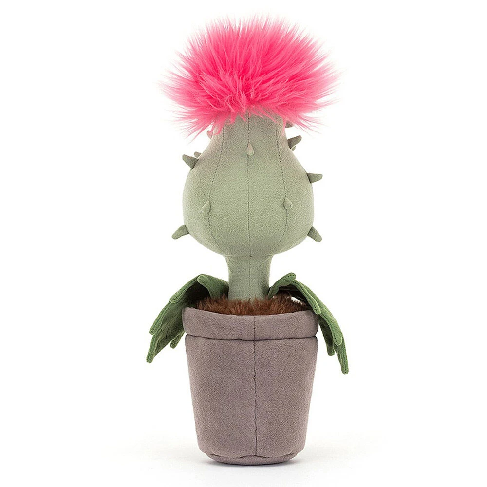 Say hello to Carniflore Priscilla! This magnificent plant is the quirkiest and most mischievous little shrub you’re ever likely to meet! With fuzzy green leaves, a spiky body and a large tuft of pink hair! She has a cheery little face which is simply irresistible. She sits in a small grey pot filled with fluffy soil so she can sit upright waiting for an adventure!
