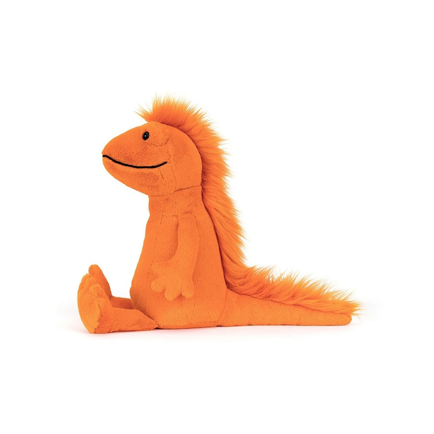 Cruz Crested Newt is easy to spot on the dance floor! In bold tangerine, with a silky-punky hairdo all the way down and the widest smile you’ll ever see, this fizzy amphibious friend just loves to boogie. Though sitting down for a rest also has its charms!