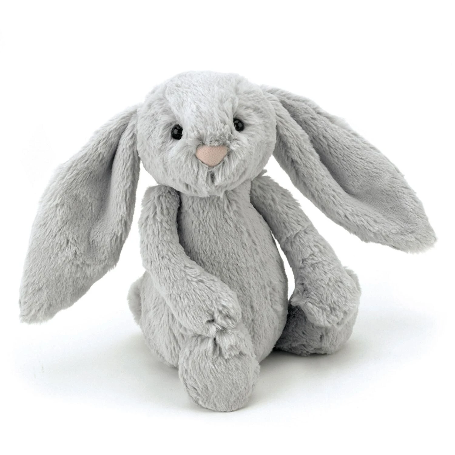He has beautifully delicate silver coloured fur, a cute pink nose and strokable soft fur. This cute medium size Bashful bunny also has a few plastic beans in his bottom, which allows him to sit up on his own when he’s not being cuddled.