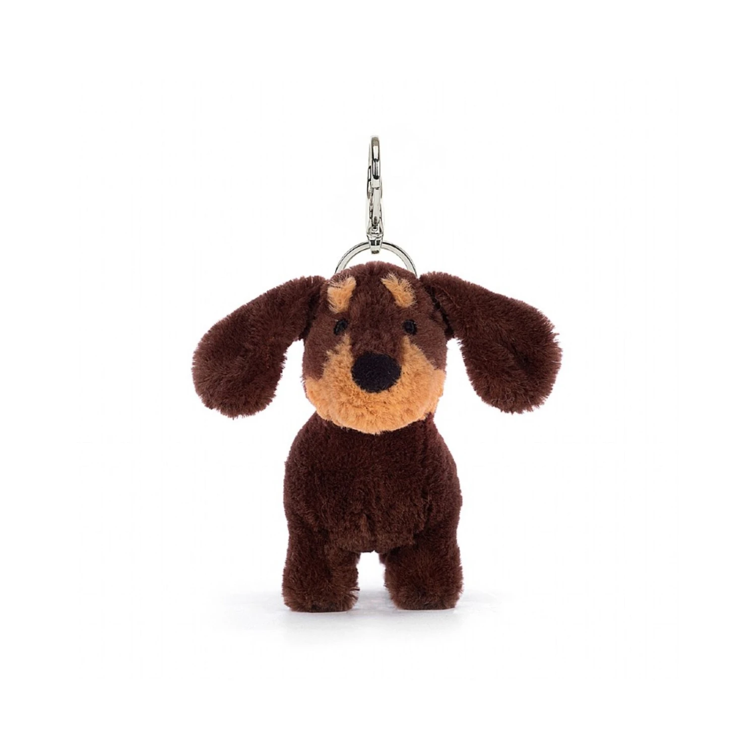 Bring your backpack to life with the Otto Sausage Dog Bag Charm. This quirky accomplice has hazelnut-chocolate fur with a curious tail and flying ears! With a crabclaw clasp, silver chain and gleaming Jellycat tag, Otto can hold on tight.