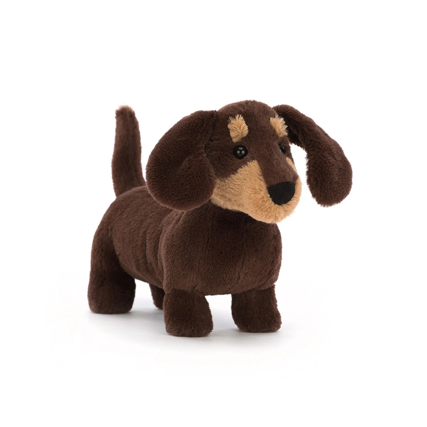 Tiny legs and a great big heart – that’s Otto Sausage Dog! This intrepid pup is divinely dinky in dark chocolate fur with caramel patches. With waggly ears, a perky tail, golden eyebrows and sassy spirit, bright-eyed Otto’s a playful little pal!Â