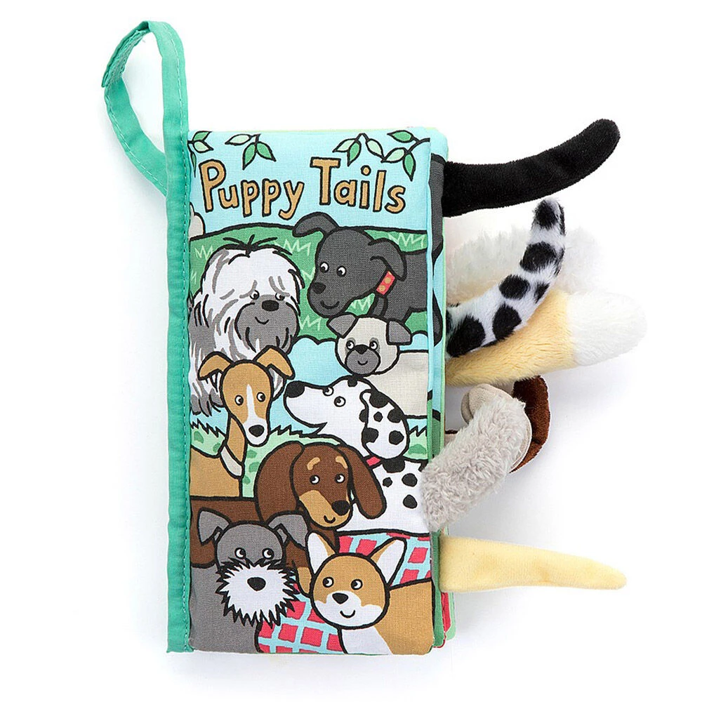 Each page features a labelled dog with colourful illustrations! This fun interactive crinkle book contains eight puppy tails across five double sided pages.